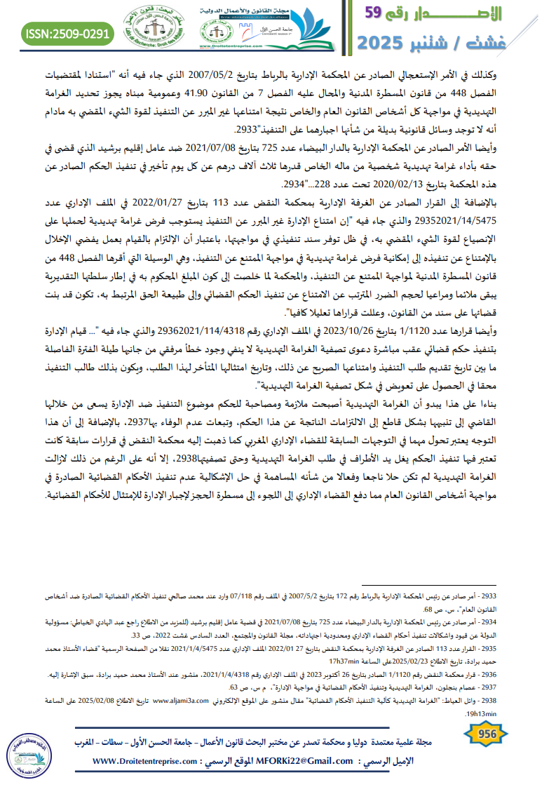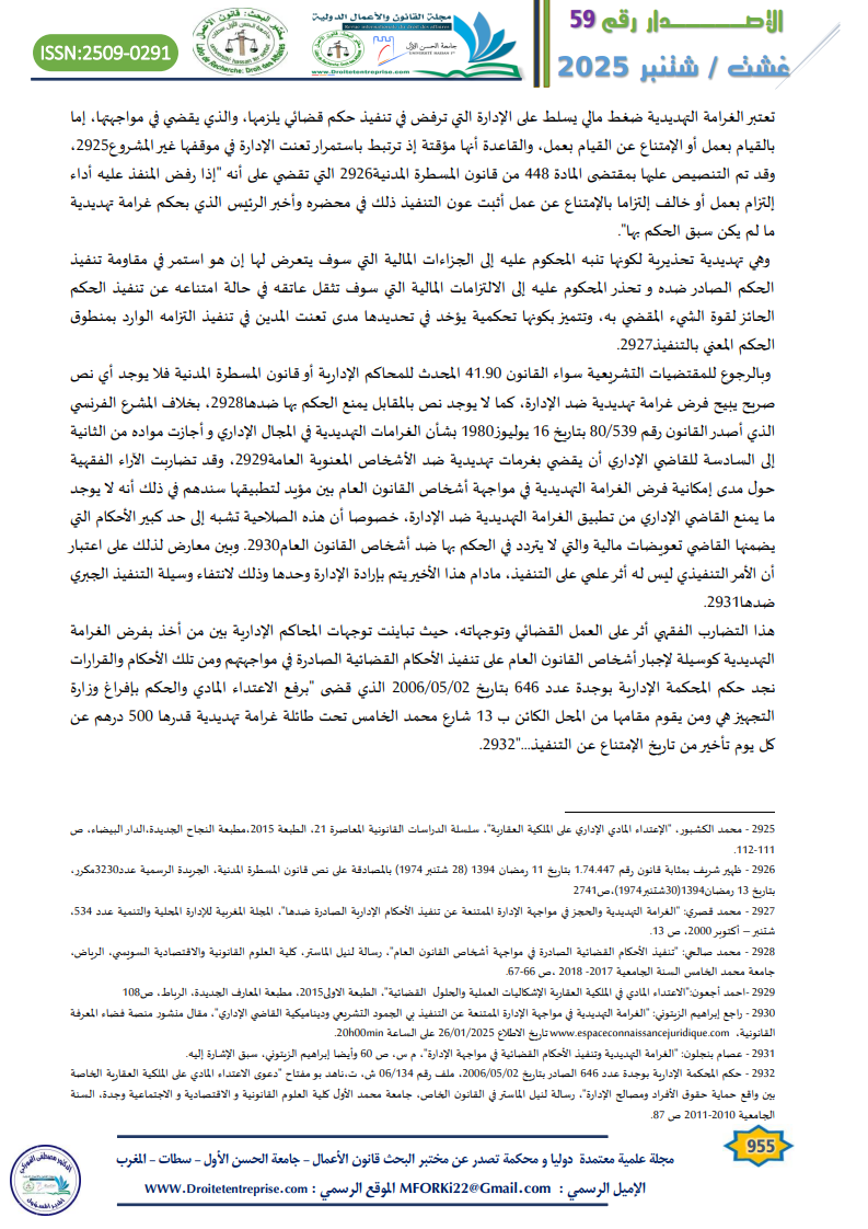 – عصام بنجلون، “الغرامة التهديدية وتنفيذ الأحكام القضائية في مواجهة الإدارة، المجلة المغربية للإدارة المحلية والتنمية، عدد 65، نونبر دجنبر 2005.