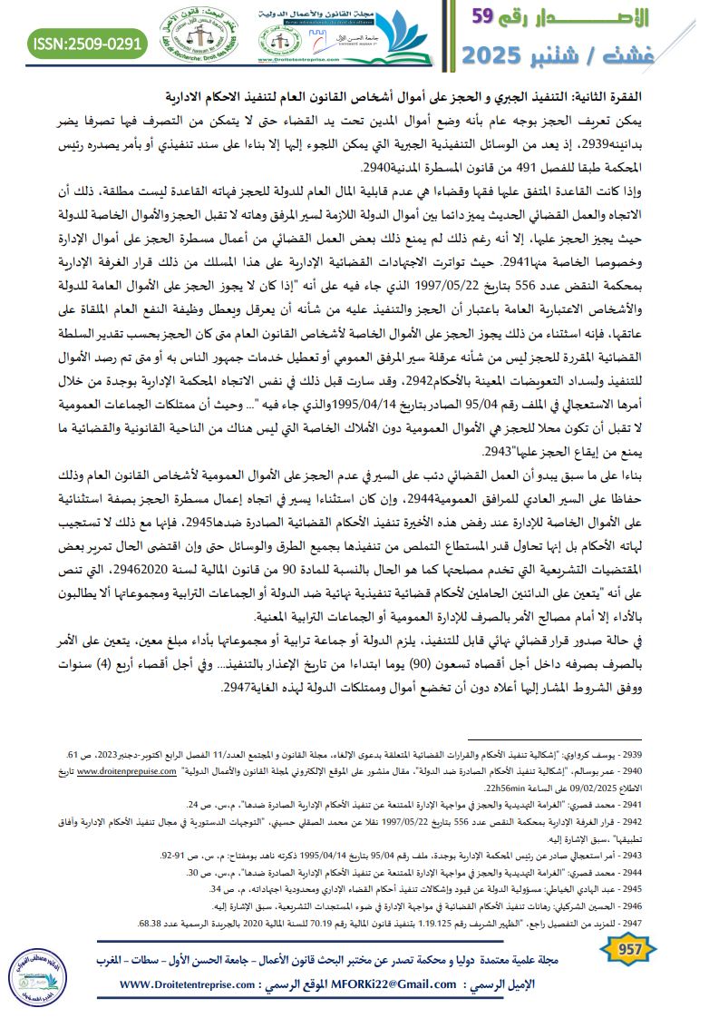 تنفيذ الأحكام القضائية ضد أشخاص القانون العام -الإشكالات القانونية والحلول القضائية- الدكتور : جاد الله الادريسي