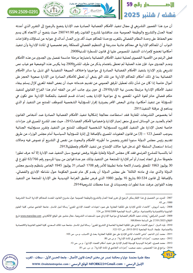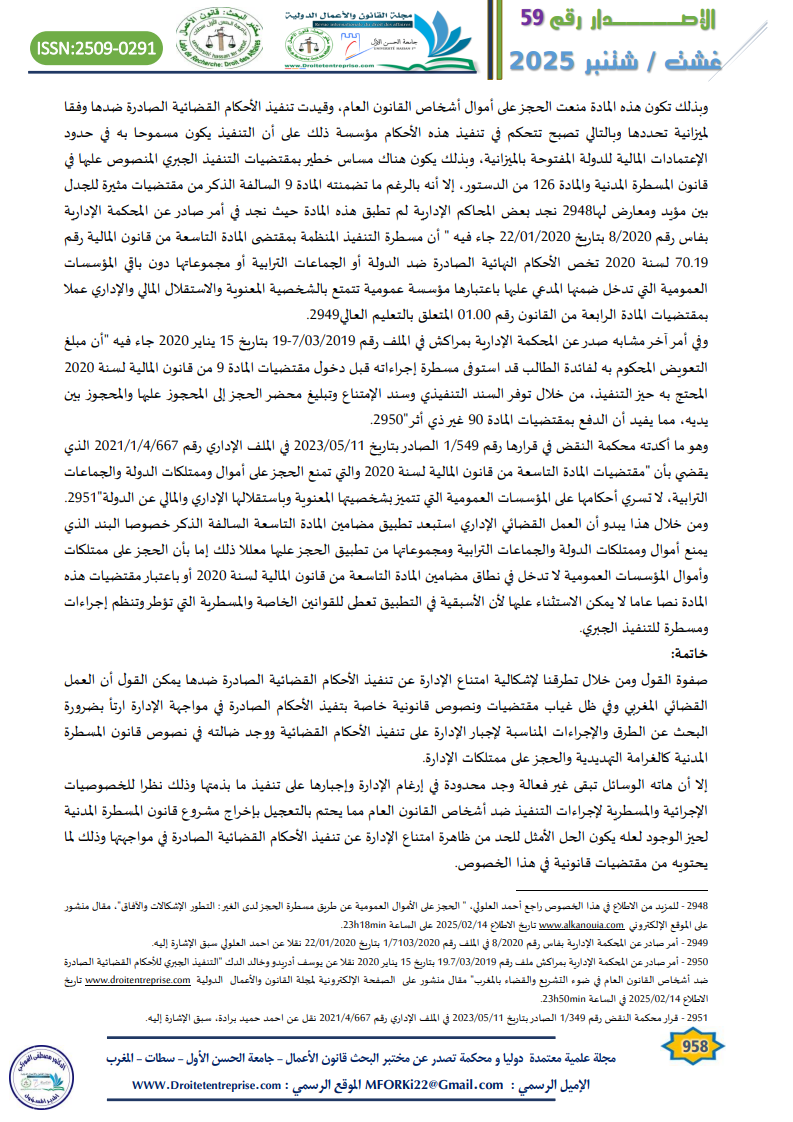 – عائشة سلمان، “إشكالية تنفيذ الأحكام القضائية الصادرة في مواجهة الإدارة”، المجلة المغربية للإدارة المحلية والتنمية، عدد مزدوج 72-73 يناير – أبريل 2007 ص 65. وأيضا محمد أباه الناجم، م، س، س: 103.