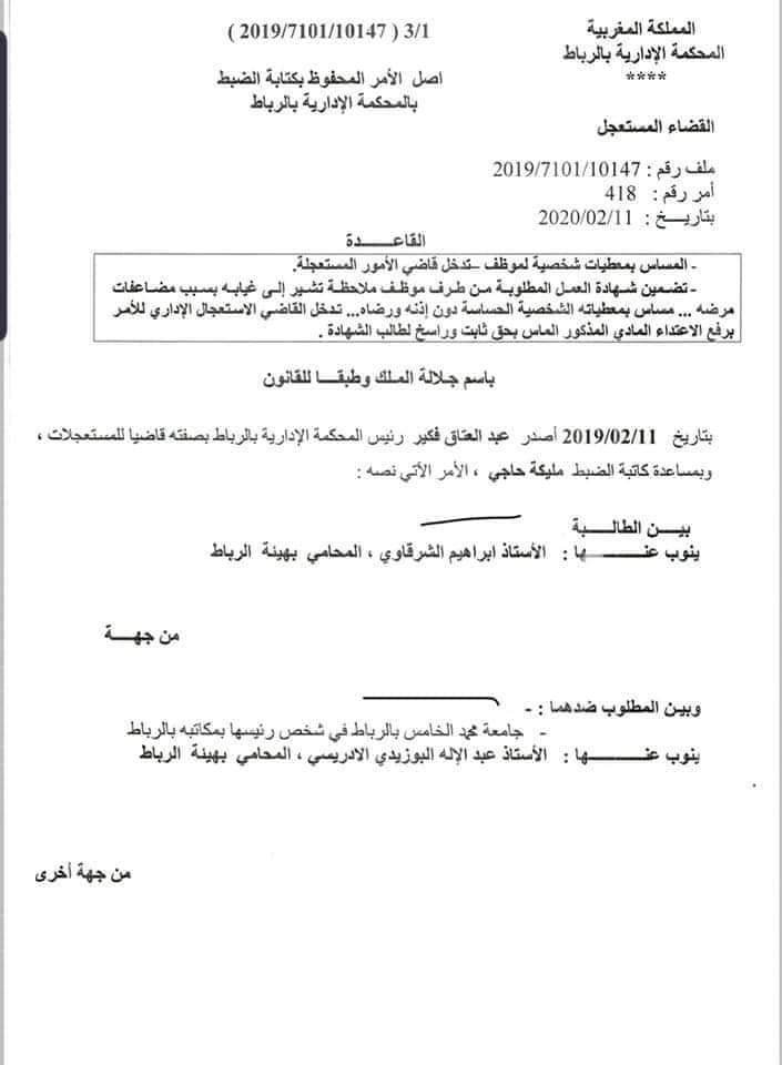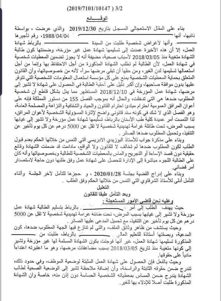 إدارية الرباط : تضمين شهادة العمل الوضعية الصحية للأجير يعتبر مساس بمعطياته الشخصية