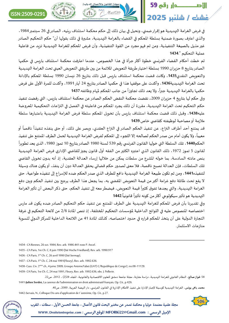 - أهمية التعاون بين التحكيم والقضاء: يستند تطبيق الغرامة التهديدية إلى تعاون المحكم مع القضاء، خصوصا في حالات تصفية الغرامة.