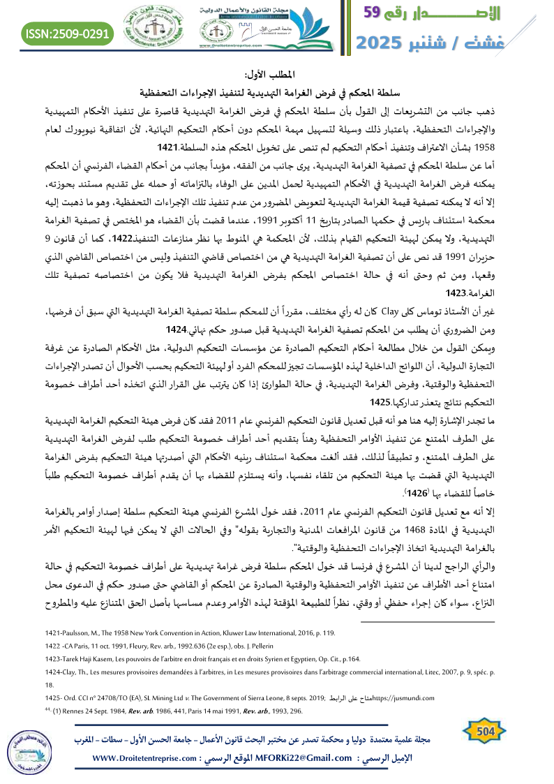 سلطة المحكم في فرض الغرامة التهديدية لتنفيذ الإجراءات التحفظية