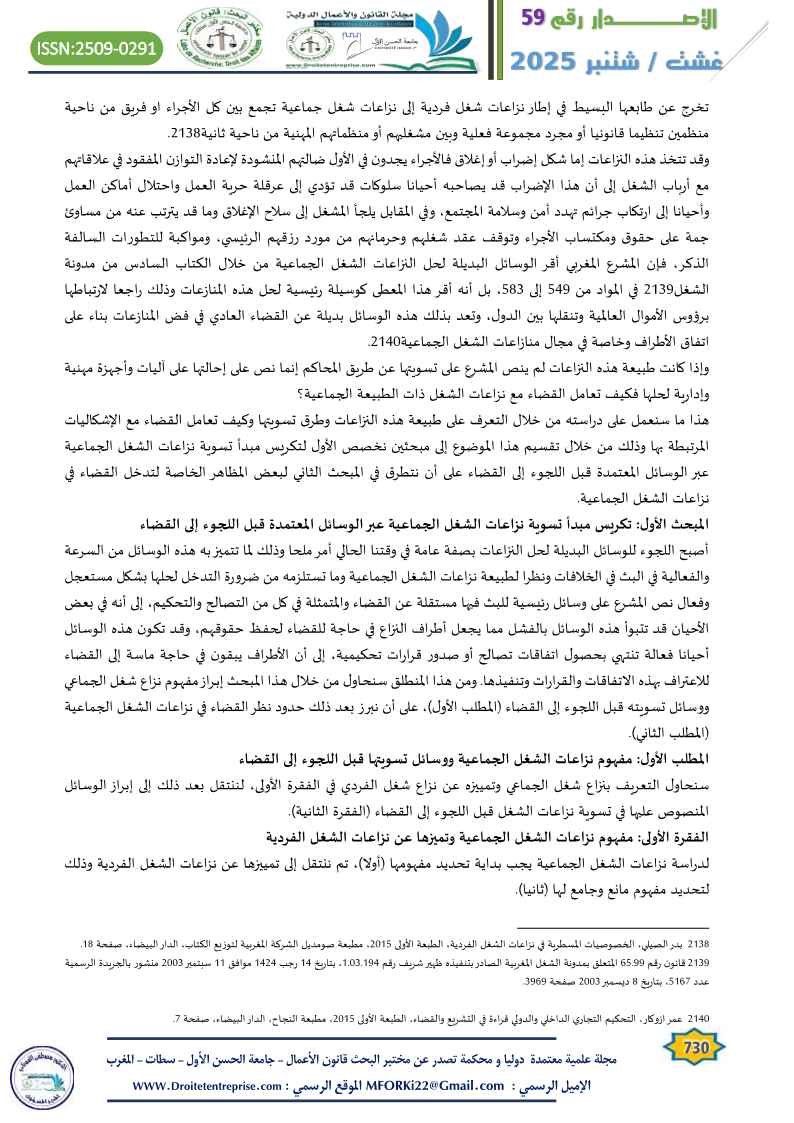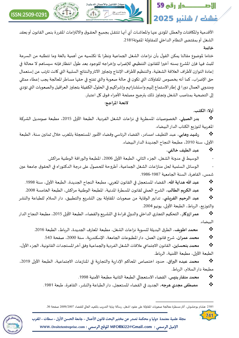 محمد المعاشي، الآليات القانونية لفض نزاعات الشغل الجماعية، مقال منشور بموقع مجلة العلوم القانونية https//m.marocdroit.com.