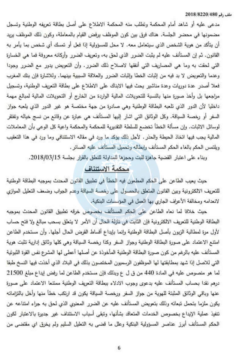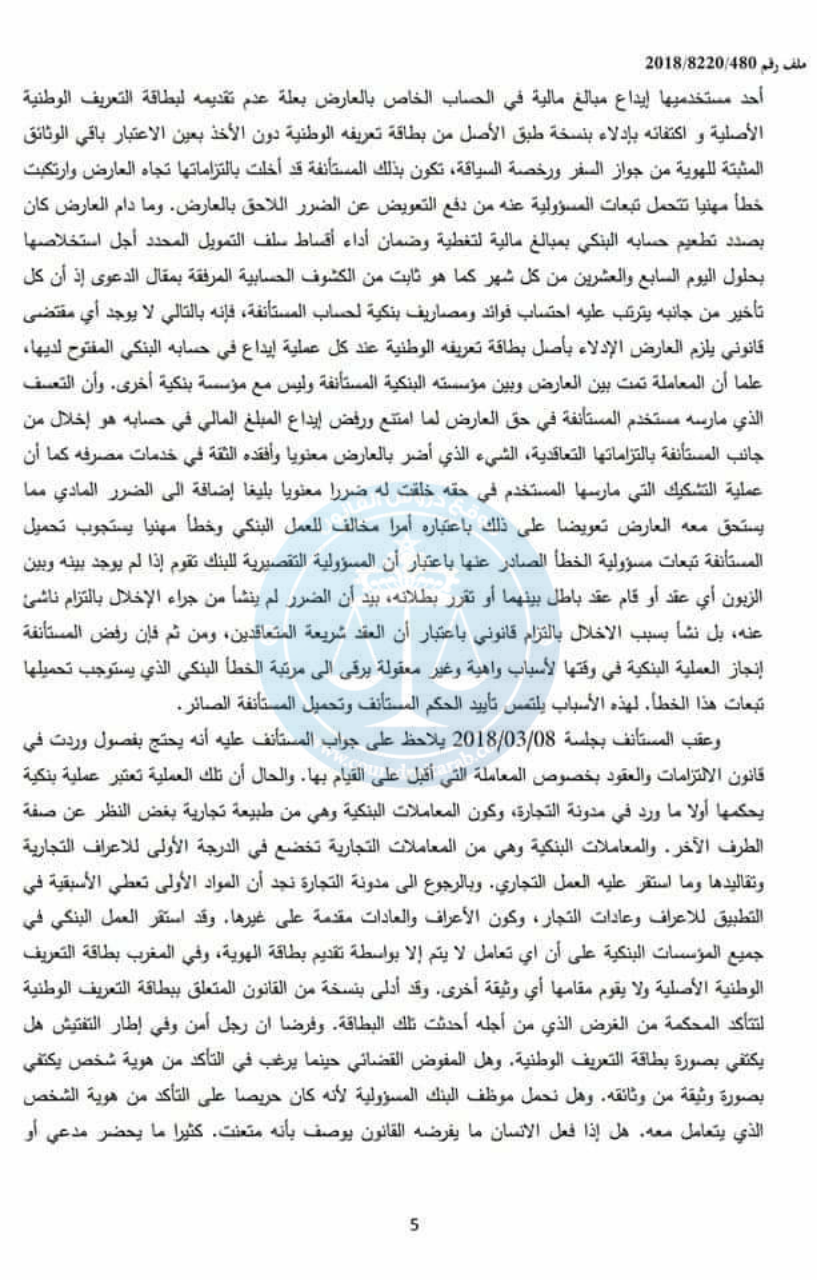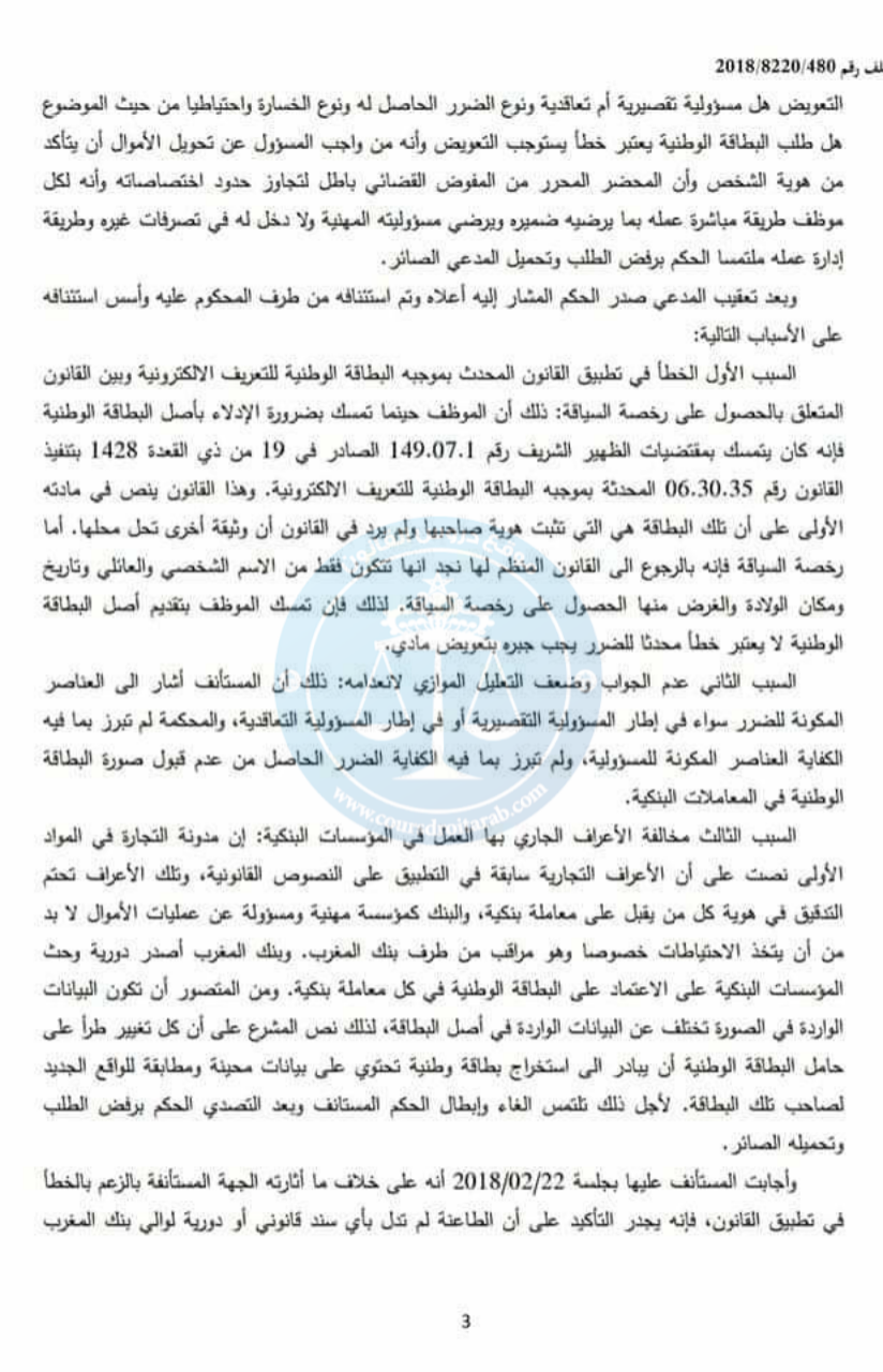 قرار محكمة الإستئناف التجارية الداربيضاء : امتناع البنك عن تقديم خدمة لزبونه بواسطة نسخة من البطاقة الوطنية مصادق عليها يعتبر خطأ