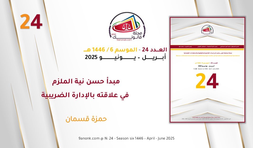 مبدأ حسن نية الملزم في علاقته بالإدارة الضريبية – حمزة قسمان