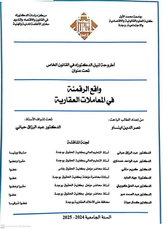 نصر الدين ايناو: أطروحة جامعية تناقش واقــع الرقمنة في المعاملات العقارية بالمغرب